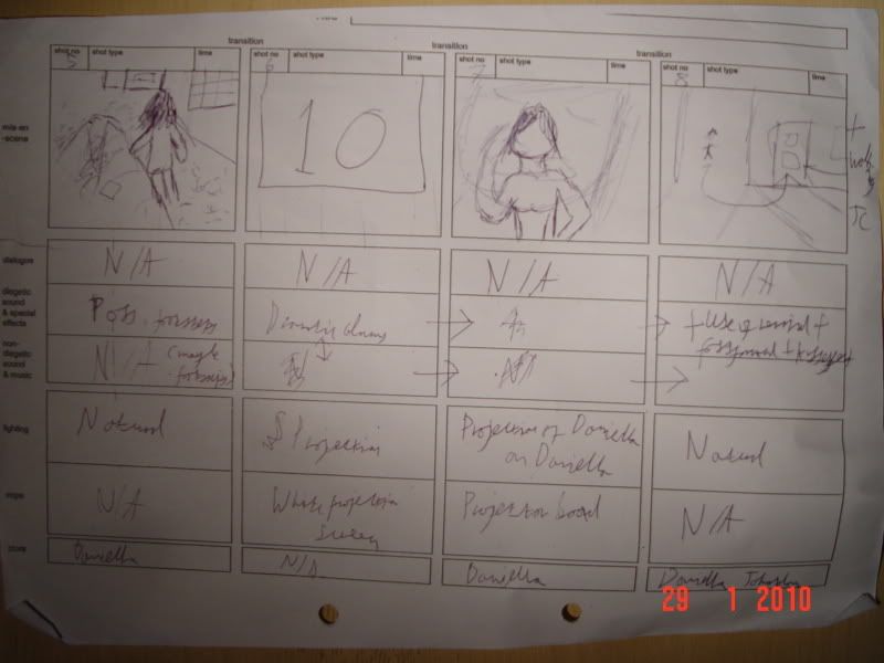 I had great difficulty filming as well as arranging the actors and equipment, all of which consisted of having to get the actors themselves to control lighting, and having to arrange with the school's staff for my male actor, Jonathan Cobbing, to enter the school-as he is not a student, whilst Daniella is. Whilst this was a difficult task, it proved to be successful, and I feel rewarded by the sense of independence I needed to develop at the very last minute.